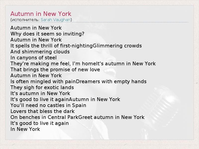 А как ты думаешь, о чем песня "Autumn in New York" ?