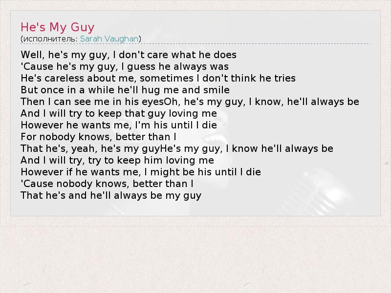 А как ты думаешь, о чем песня "He's My Guy" ?