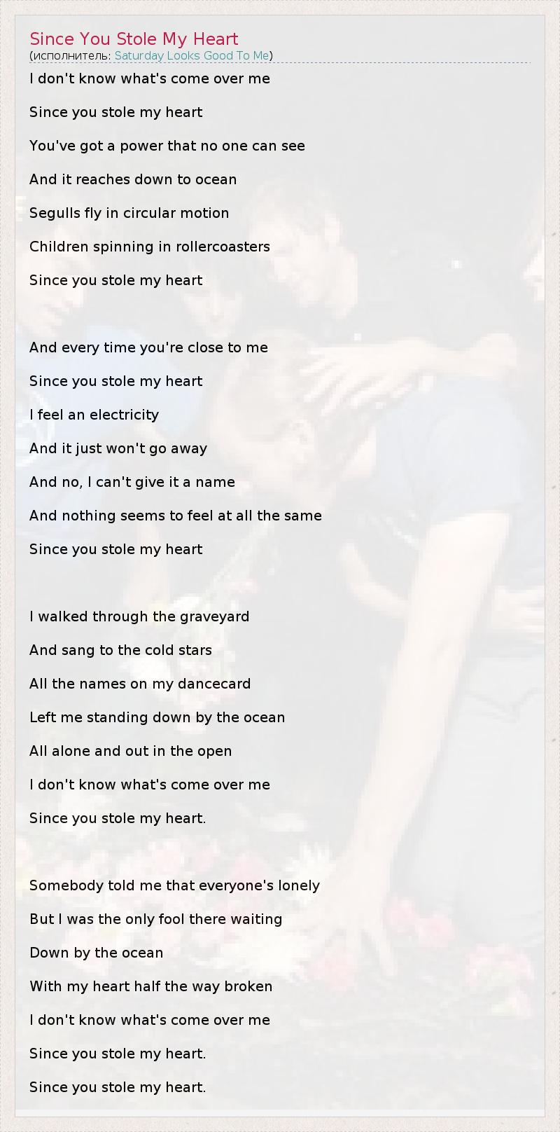 А как ты думаешь, о чем песня "Since You Stole My Heart" ?