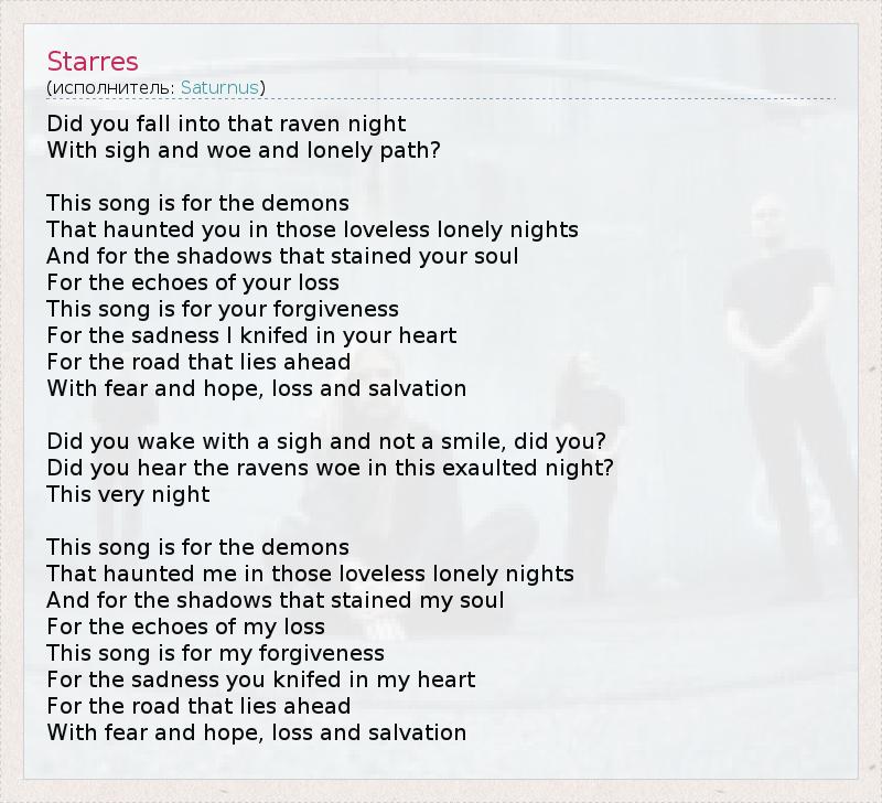 Которые захватывают тебя в лишённую любви одинокую ночь