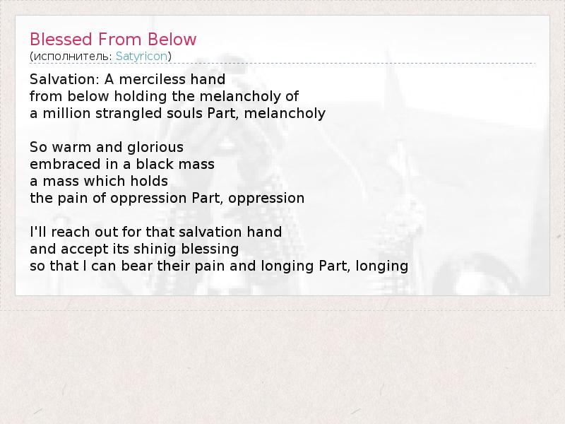 А как ты думаешь, о чем песня "Blessed From Below" ?