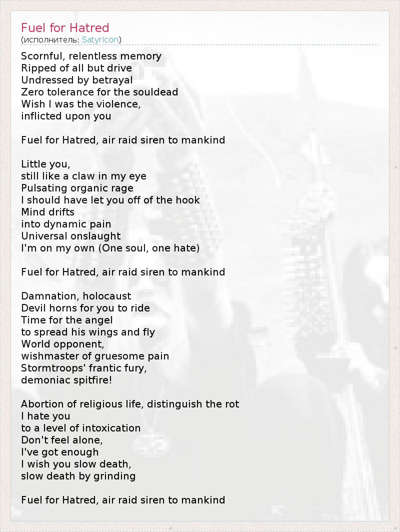 А как ты думаешь, о чем песня "Fuel for Hatred" ?