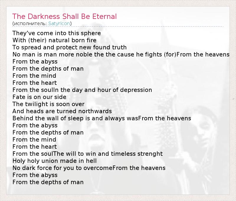 А как ты думаешь, о чем песня "The Darkness Shall Be Eternal" ?