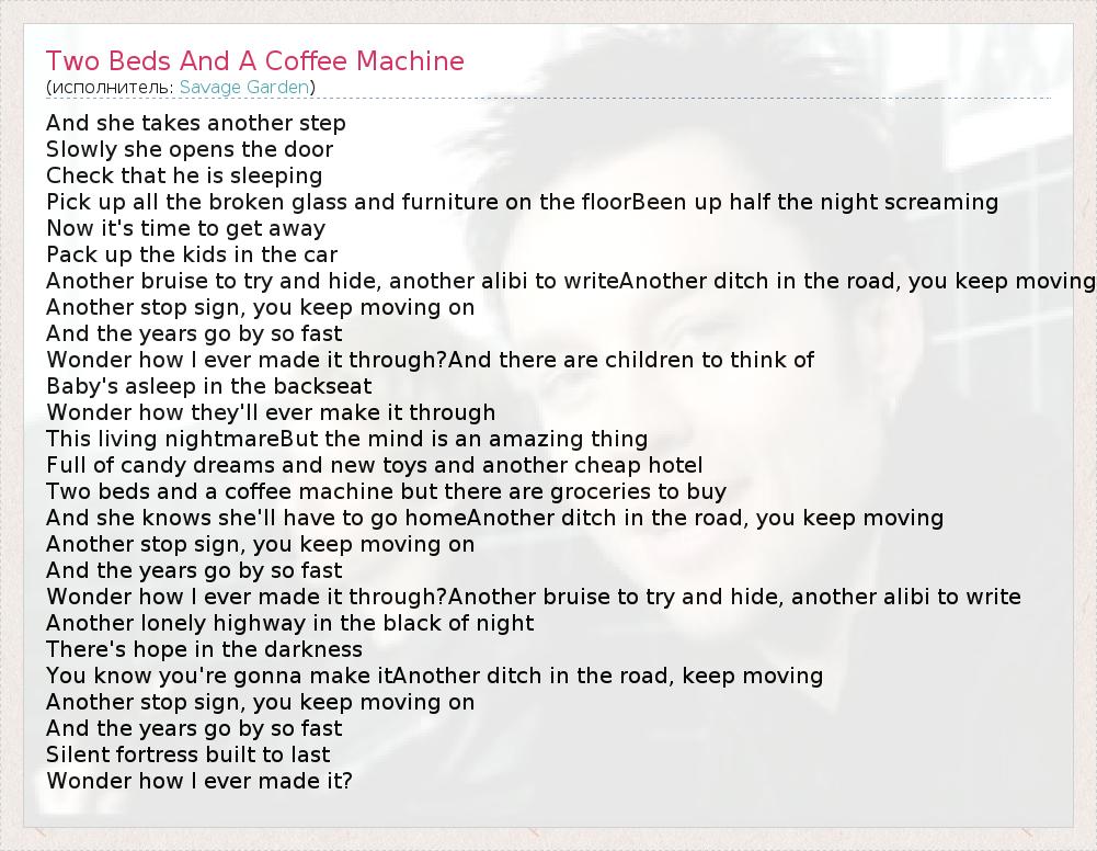 А как ты думаешь, о чем песня "Two Beds And A Coffee Machine" ?