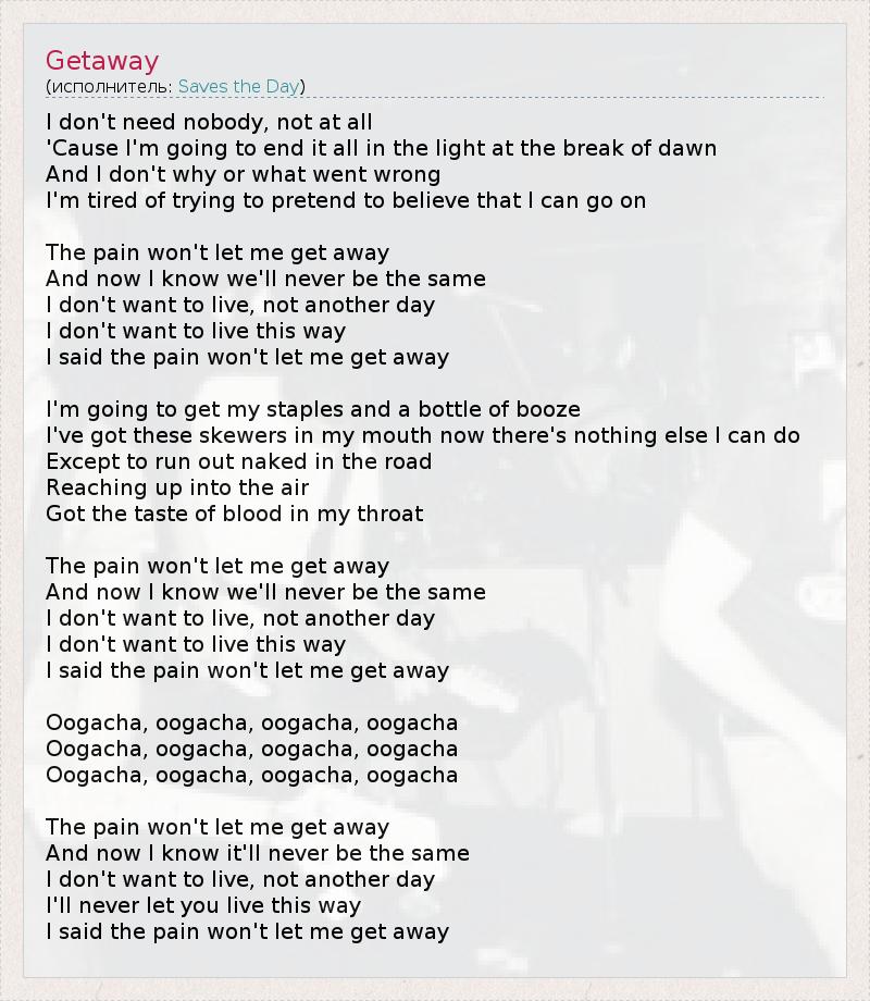 А как ты думаешь, о чем песня "Getaway" ?