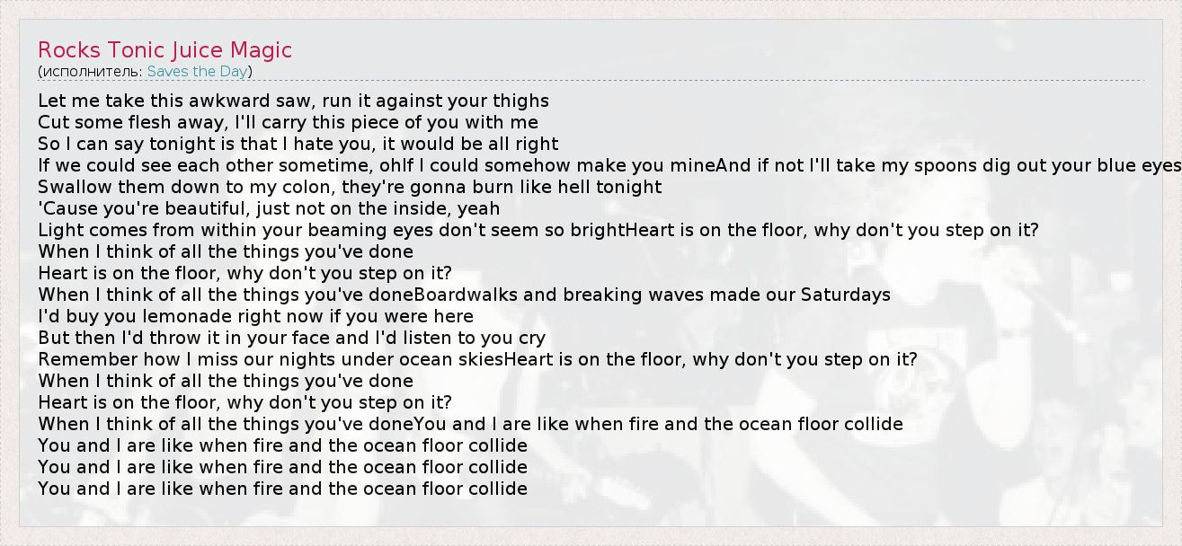 А как ты думаешь, о чем песня "Rocks Tonic Juice Magic" ?