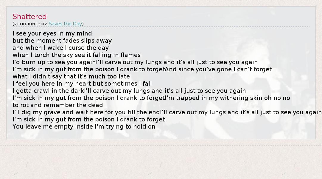А как ты думаешь, о чем песня "Shattered" ?