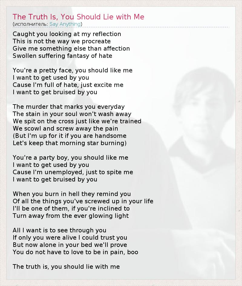 А как ты думаешь, о чем песня "The Truth Is, You Should Lie with Me" ?