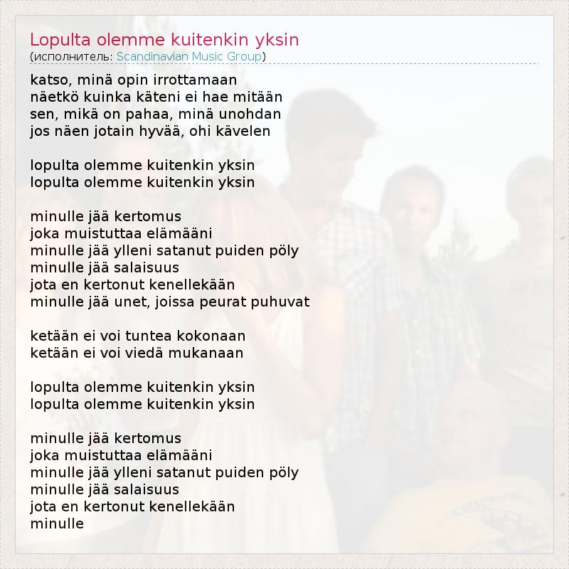 А как ты думаешь, о чем песня "Lopulta olemme kuitenkin yksin" ?