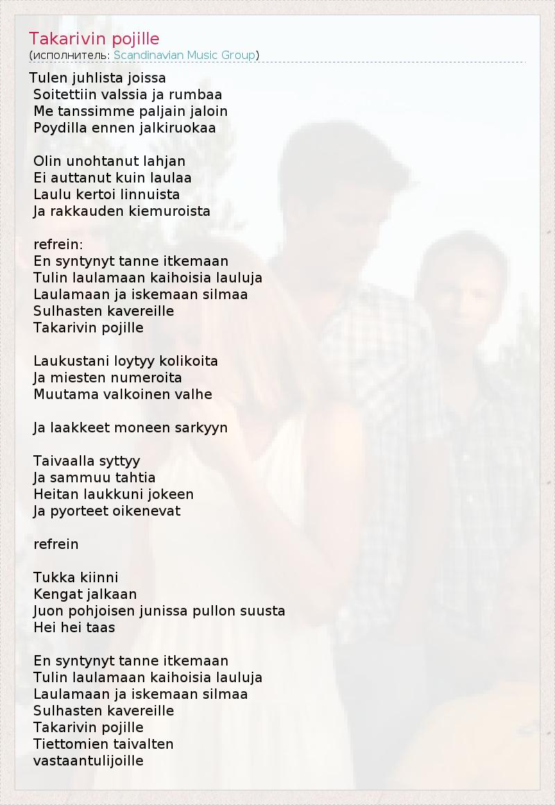 А как ты думаешь, о чем песня "Takarivin pojille" ?