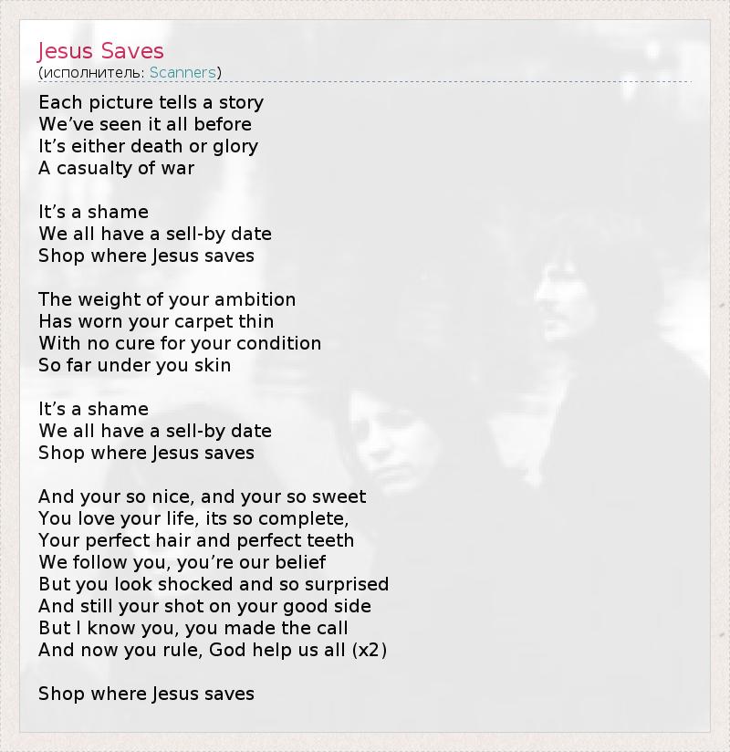 А как ты думаешь, о чем песня "Jesus Saves" ?