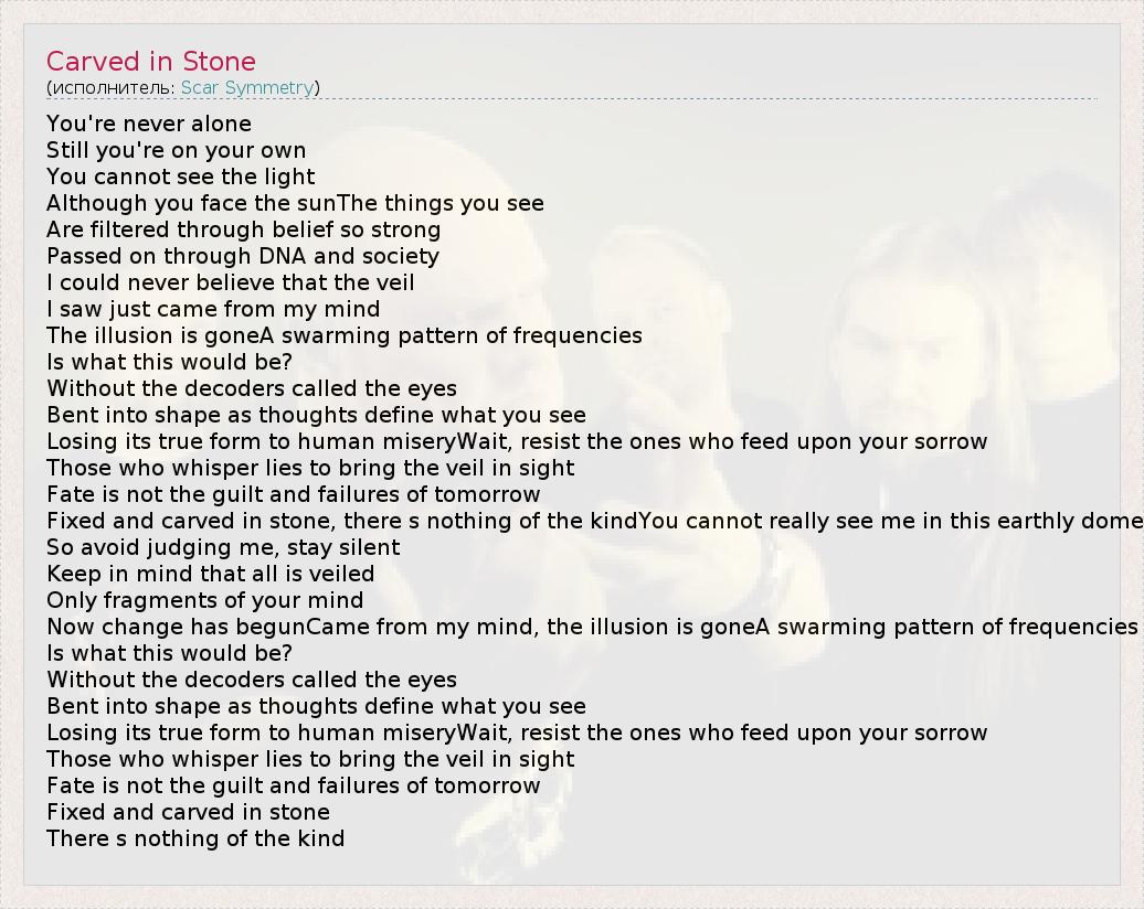 А как ты думаешь, о чем песня "Carved in Stone" ?