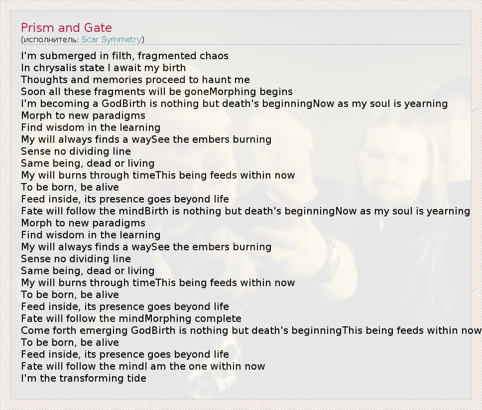 А как ты думаешь, о чем песня "Prism and Gate" ?