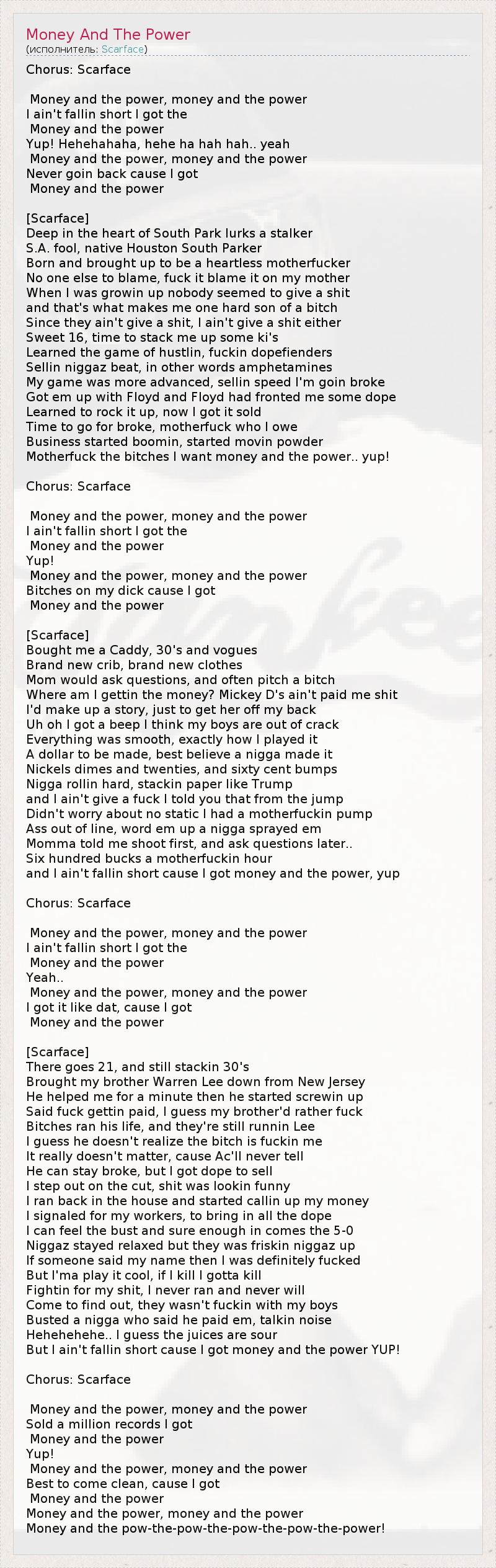 А как ты думаешь, о чем песня "Money And The Power" ?