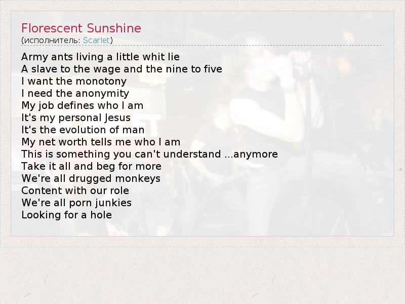 А как ты думаешь, о чем песня "Florescent Sunshine" ?