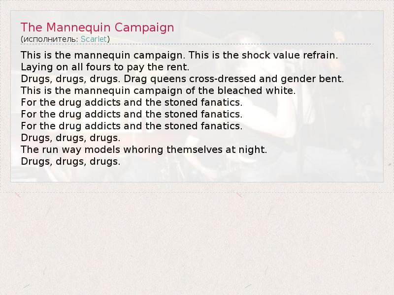 А как ты думаешь, о чем песня "The Mannequin Campaign" ?