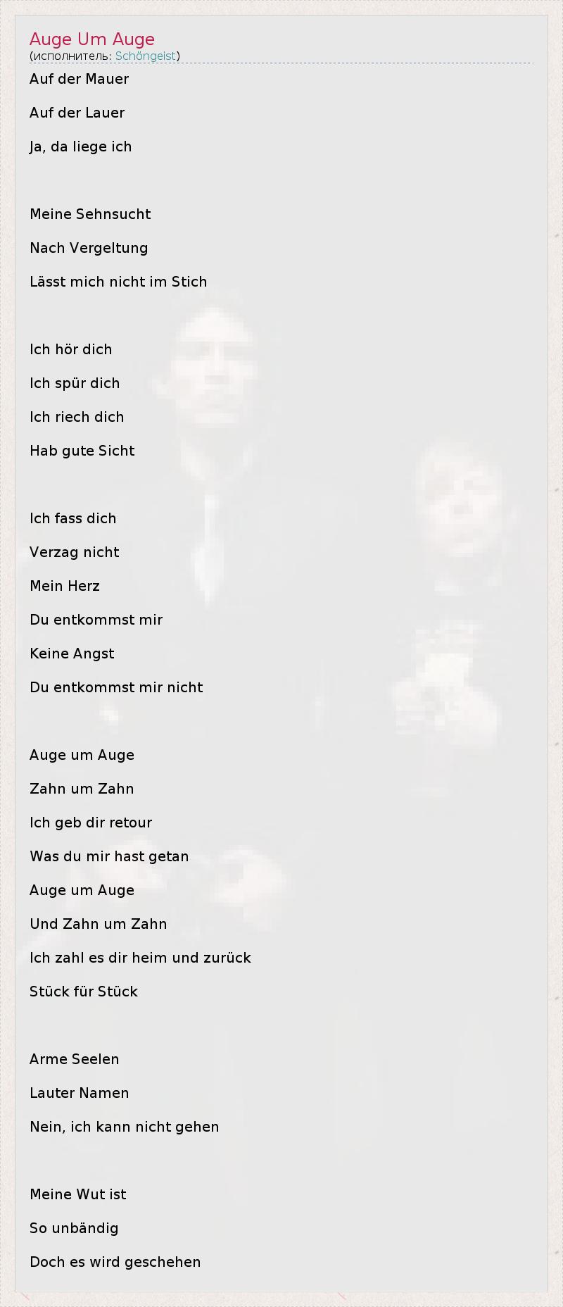 А как ты думаешь, о чем песня "Auge Um Auge" ?