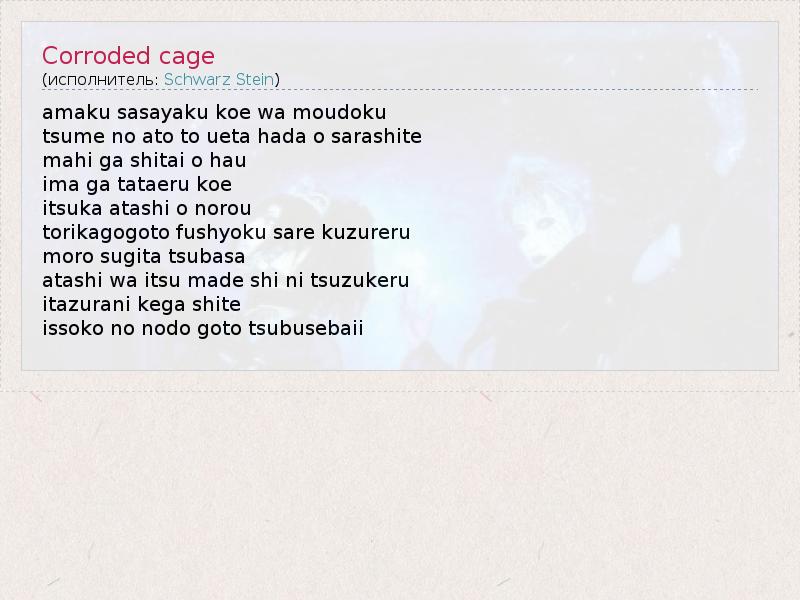 А как ты думаешь, о чем песня "Corroded cage" ?
