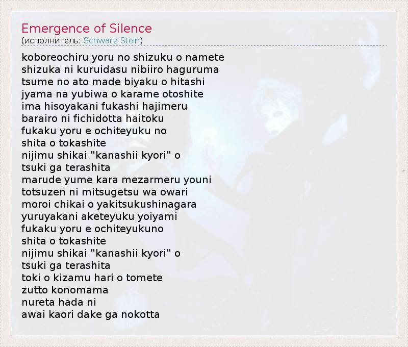 А как ты думаешь, о чем песня "Emergence of Silence" ?