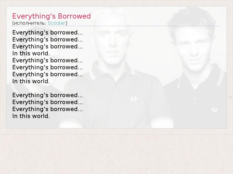 А как ты думаешь, о чем песня "Everything's Borrowed" ?