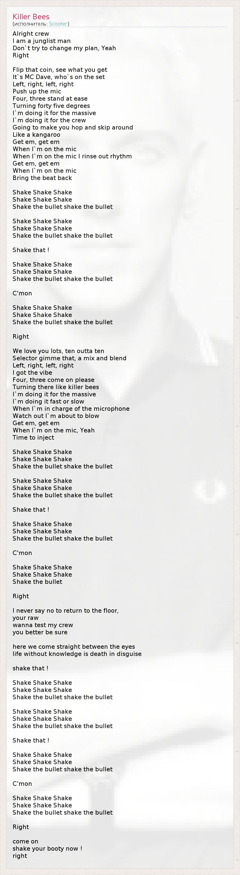А как ты думаешь, о чем песня "Killer Bees" ?