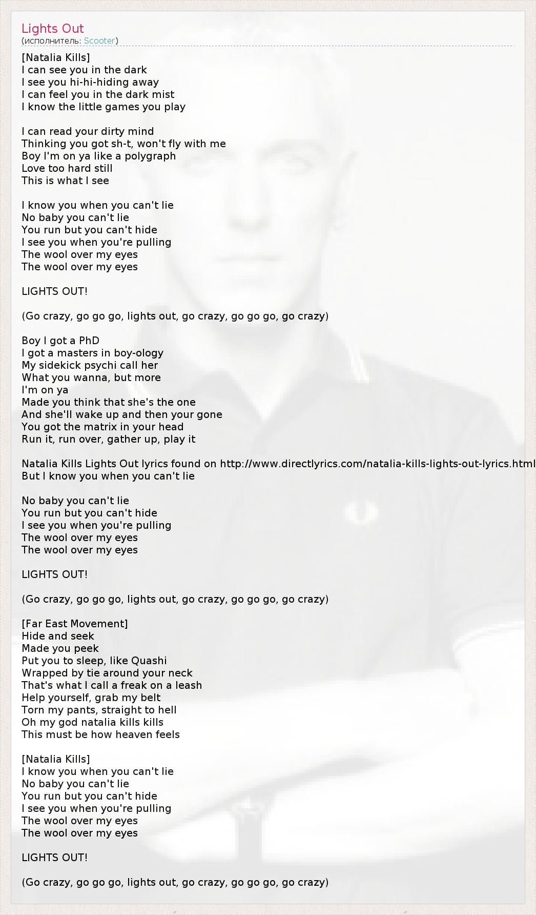 Natalia Kills Lights Out lyrics found on http://www.directlyrics.com/natalia-kills-lights-out-lyrics.html