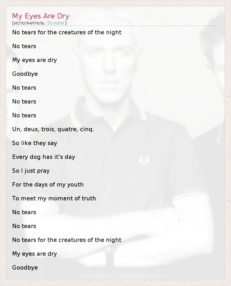 А как ты думаешь, о чем песня "My Eyes Are Dry" ?