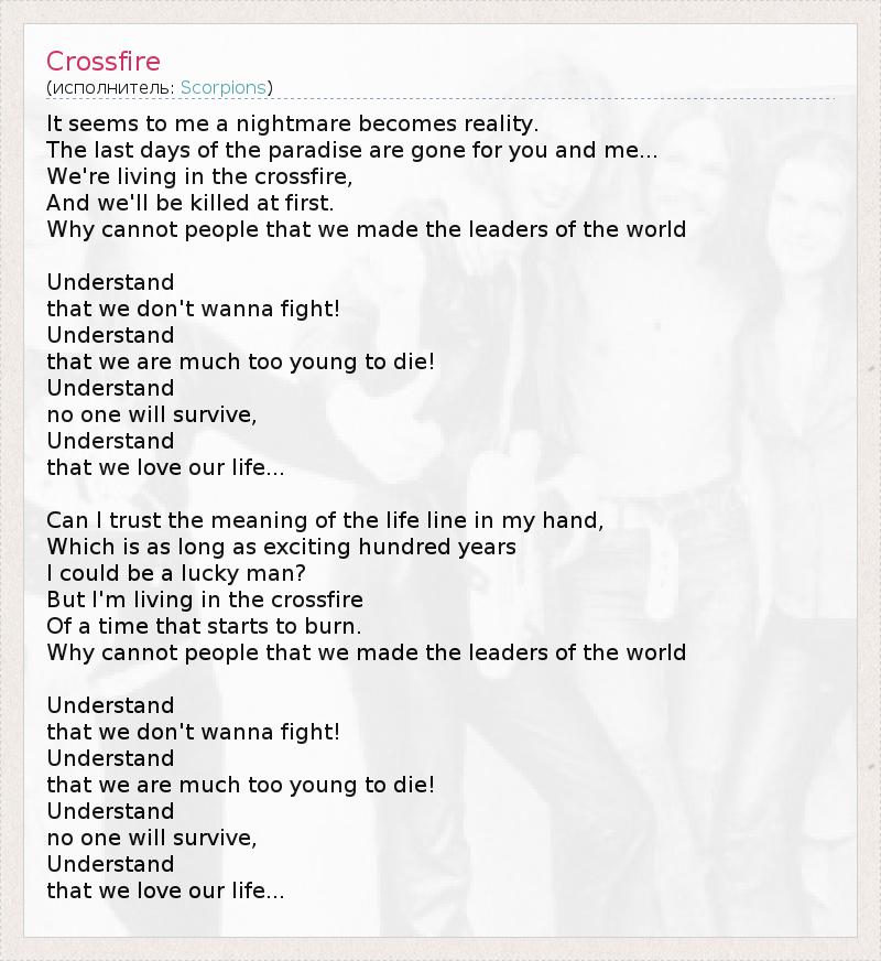 Это интересно:Scorpions («Скорпионы») — легендарная немецкая рок-группа, образована в 1965 году в Ганновере. Песни группы относят к таким направлениям, как классический хард-рок и хеви-метал. Отличительной особенностью группы всегда являлось наличие гитарных баллад во всех их альбомах, благодаря чему "скорпов" также относят к "мелодичным" представителям жанра. Scorpions является одной из самых популярных... продолжение