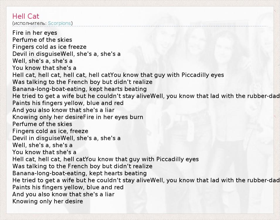 А как ты думаешь, о чем песня "Hell Cat" ?
