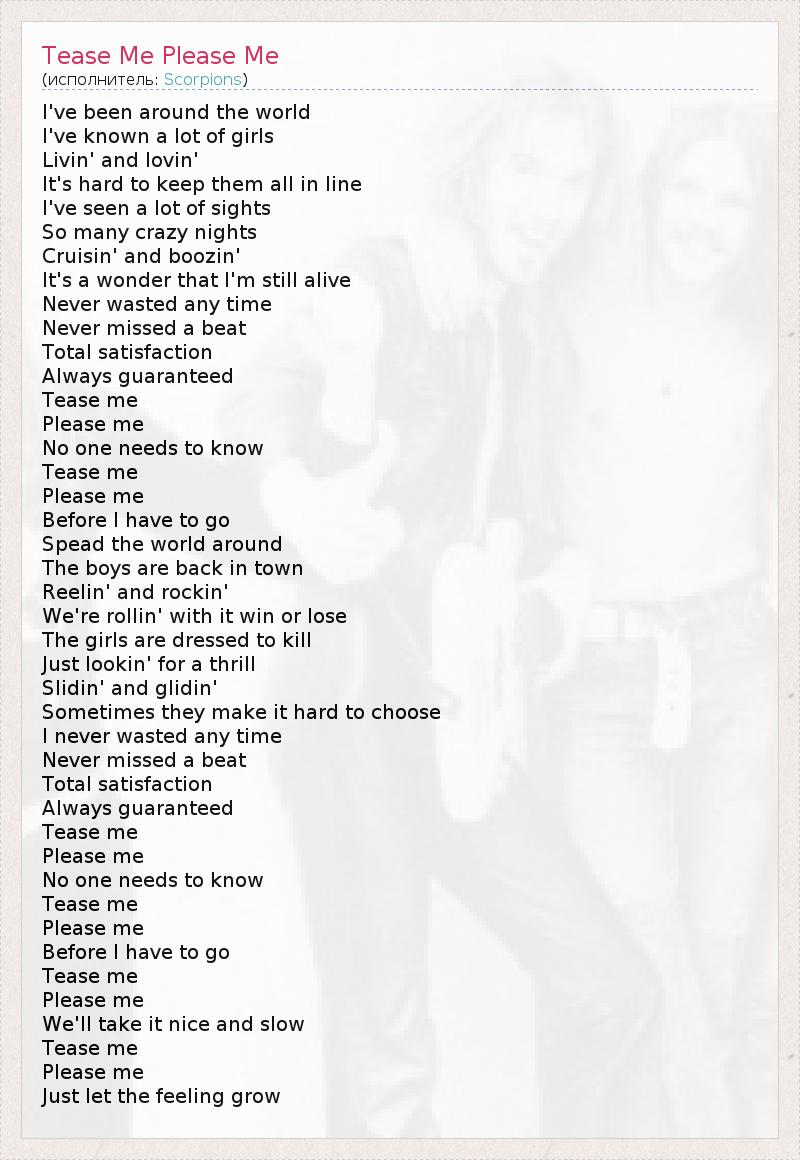 А как ты думаешь, о чем песня "Tease Me Please Me" ?