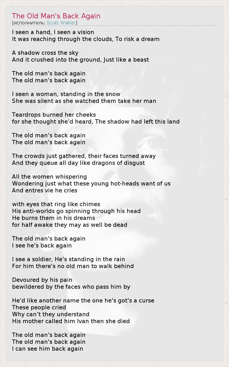 А как ты думаешь, о чем песня "The Old Man's Back Again" ?