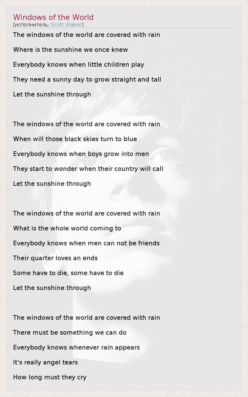 А как ты думаешь, о чем песня "Windows of the World" ?