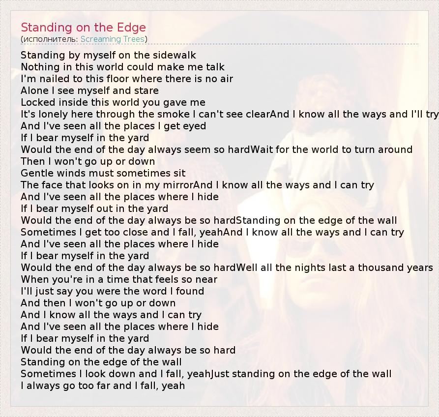 А как ты думаешь, о чем песня "Standing on the Edge" ?