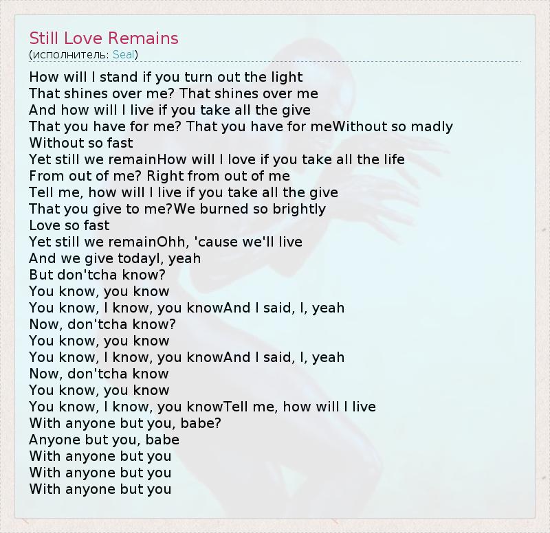 А как ты думаешь, о чем песня "Still Love Remains" ?