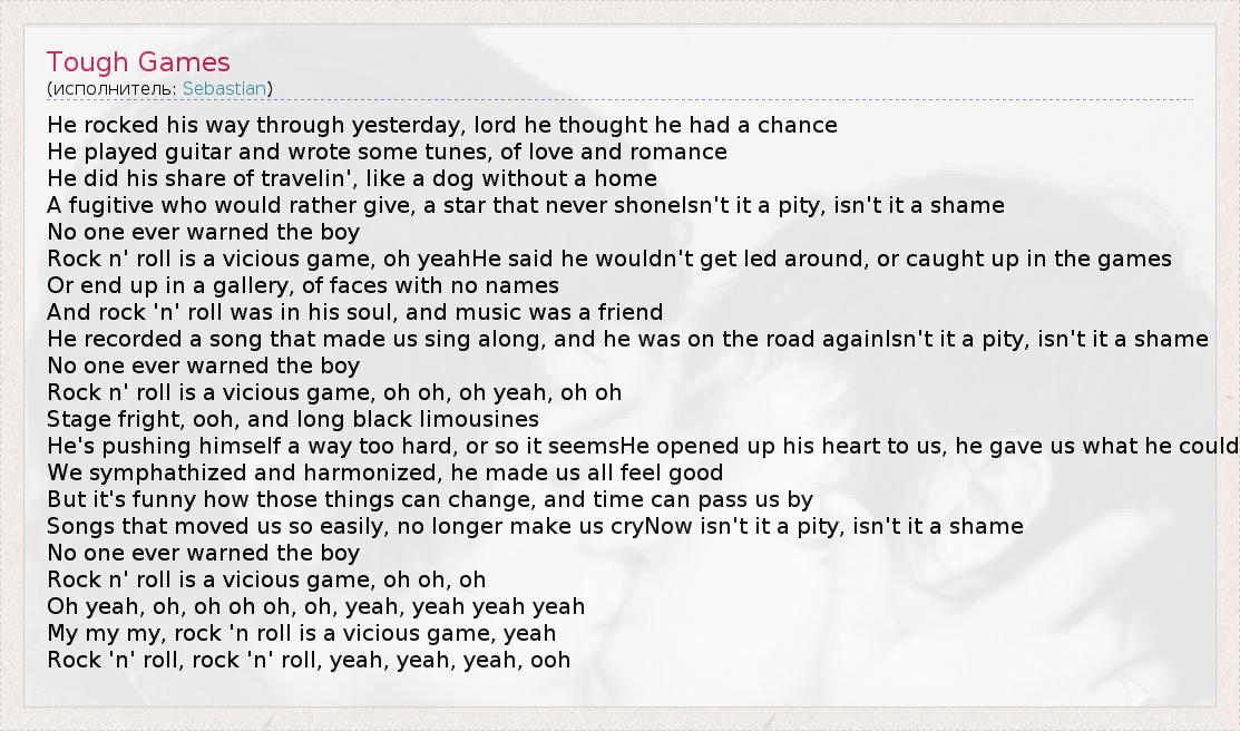 Rock n' roll is a vicious game, oh yeahHe said he wouldn't get led around, or caught up in the games