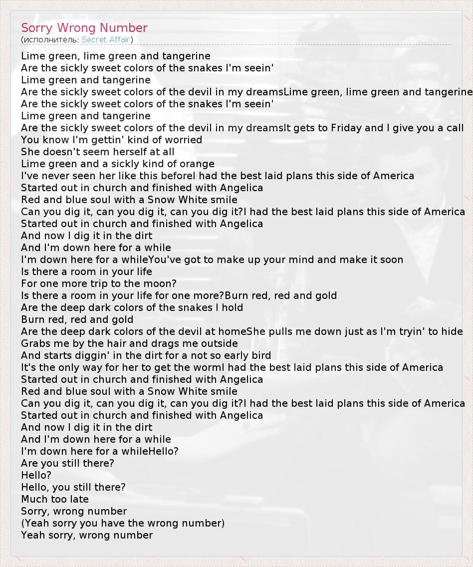 А как ты думаешь, о чем песня "Sorry Wrong Number" ?