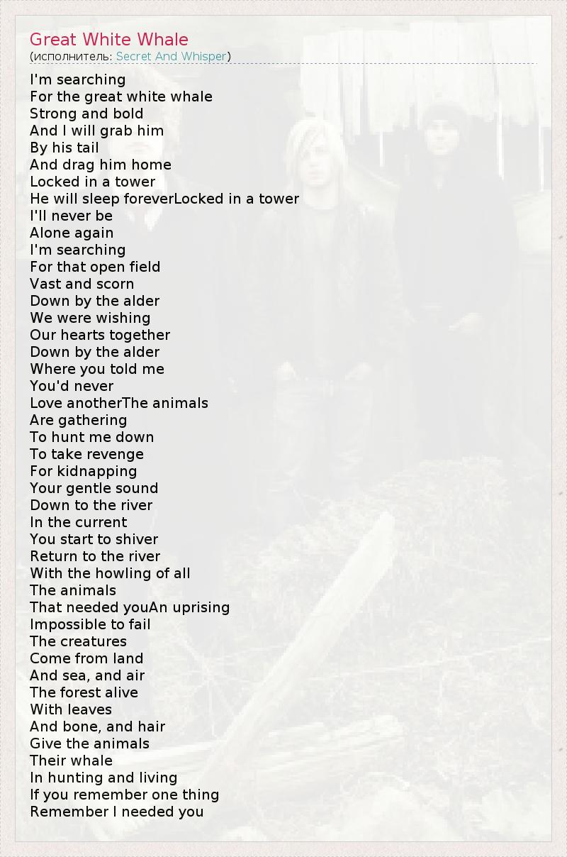 А как ты думаешь, о чем песня "Great White Whale" ?
