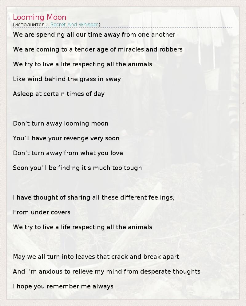 А как ты думаешь, о чем песня "Looming Moon" ?