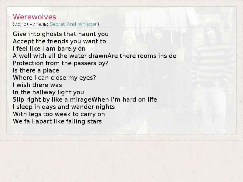 А как ты думаешь, о чем песня "Werewolves" ?