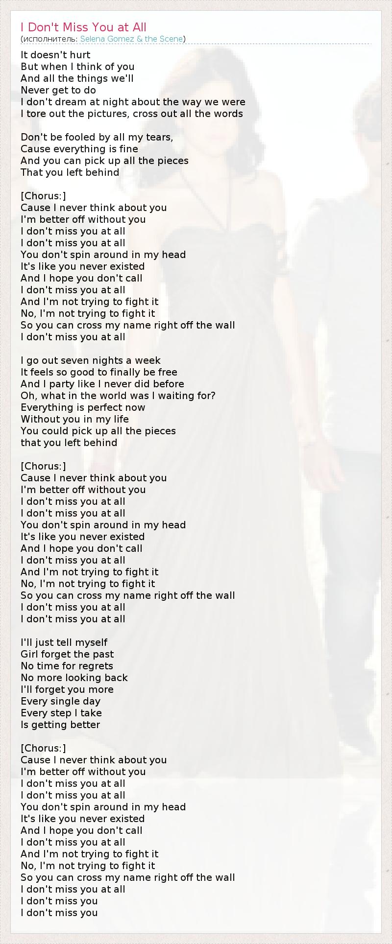 А как ты думаешь, о чем песня "I Don't Miss You at All" ?