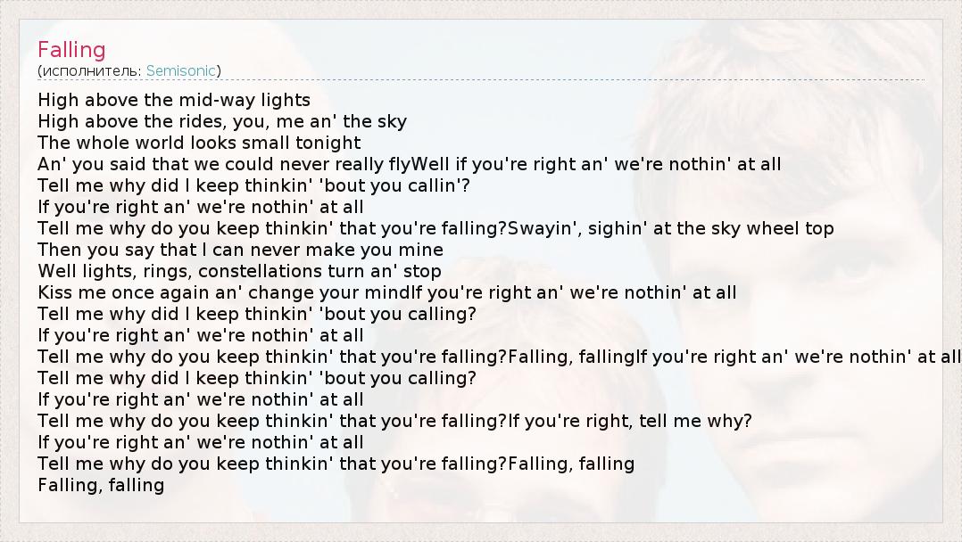 А как ты думаешь, о чем песня "Falling" ?