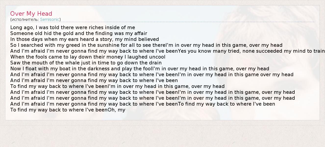 To find my way back to where I've beenI'm in over my head in this game, over my head