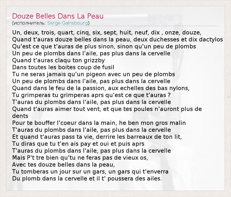 А как ты думаешь, о чем песня "Douze Belles Dans La Peau" ?