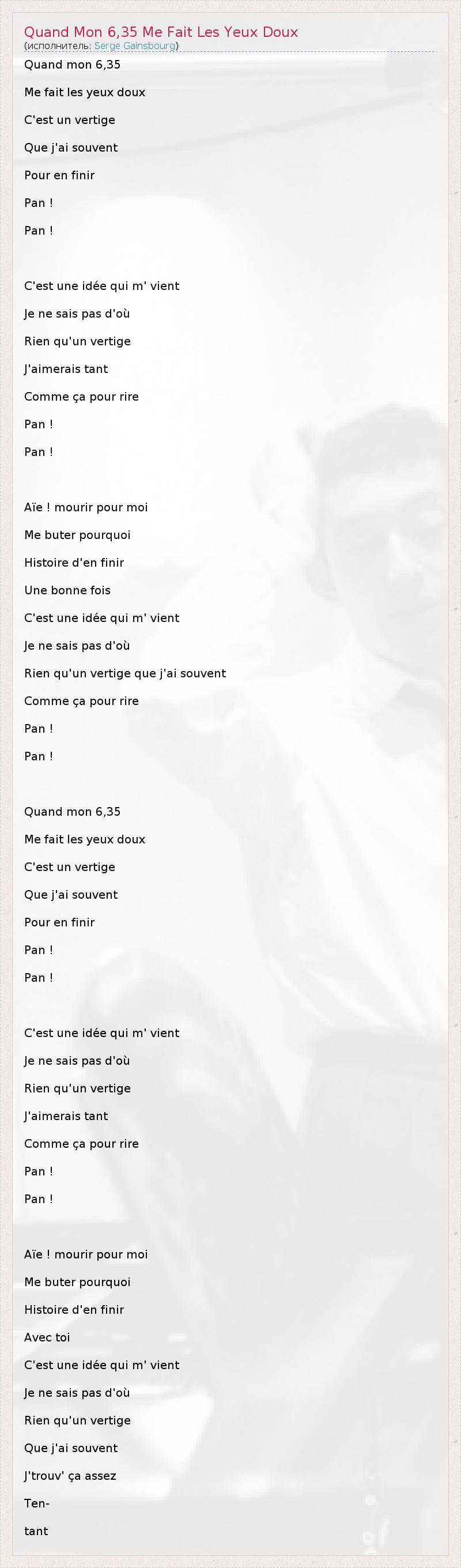 ГлавнаяИсполнителиSerge GainsbourgQuand Mon 6,35 Me Fait Les Yeux Doux