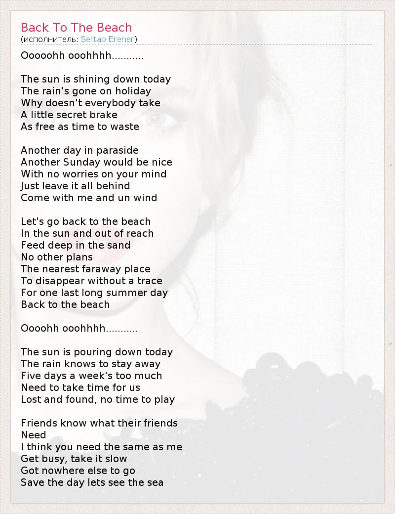 А как ты думаешь, о чем песня "Back To The Beach" ?