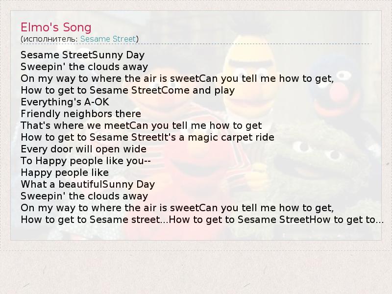 А как ты думаешь, о чем песня "Elmo's Song" ?