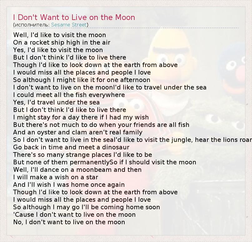 ГлавнаяИсполнителиSesame StreetI Don't Want to Live on the Moon