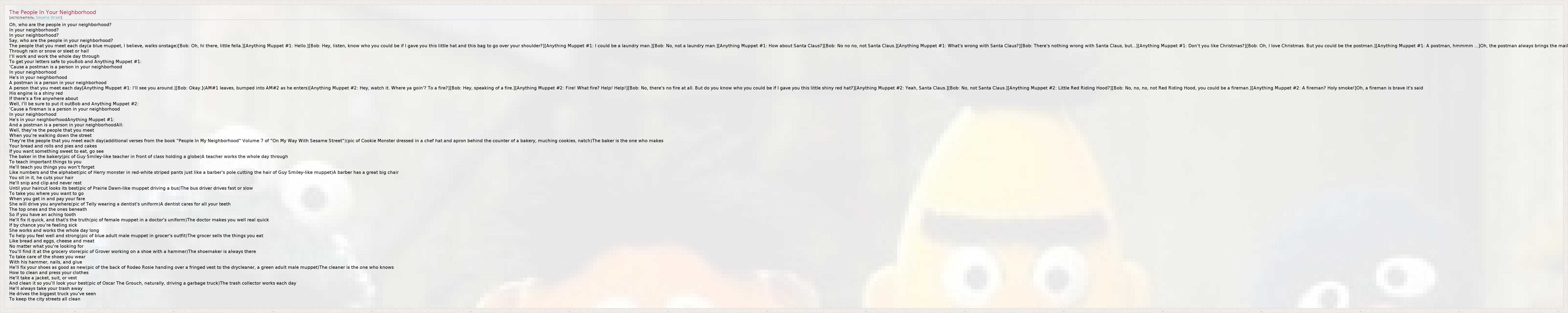 ГлавнаяИсполнителиSesame StreetThe People In Your Neighborhood