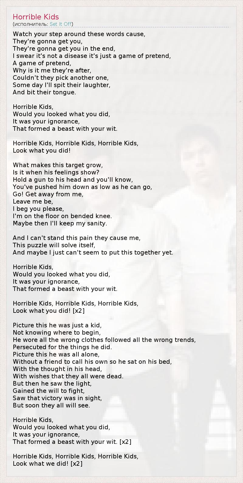 А как ты думаешь, о чем песня "Horrible Kids" ?