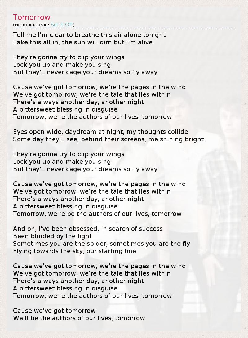Cause we've got tomorrow, we're the pages in the wind